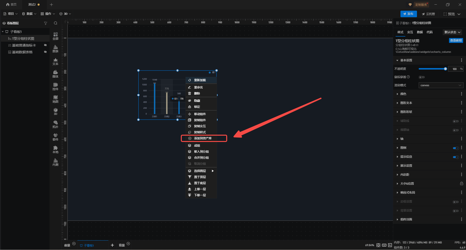 资产库作为项目资源管理与复用的核心模块,合理运用可大幅提升可视化搭建效率与规范性。本文将详细介绍资产库的功能说明、操作步骤与使用场景,帮助用户快速掌握资产库的使用方法。