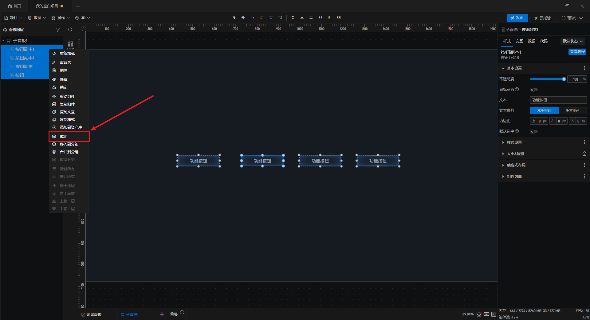 3. 复制粘贴该组件,同时全选这些组件并右键点击“成组”,将这些组件并入同一个分组中。
