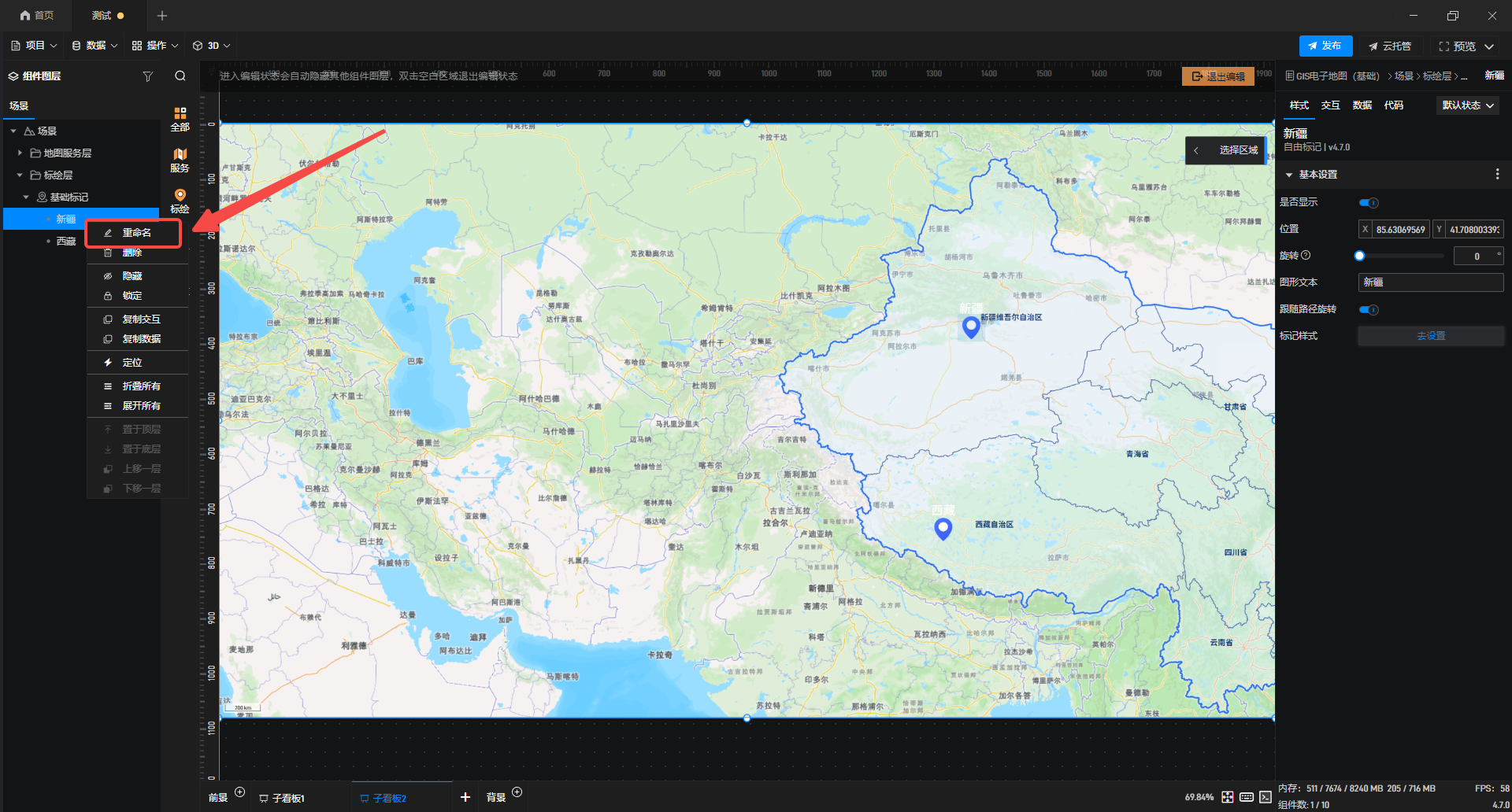 接着选择标记点,右击进行“重命名”,便于后续添加交互时快速识别。