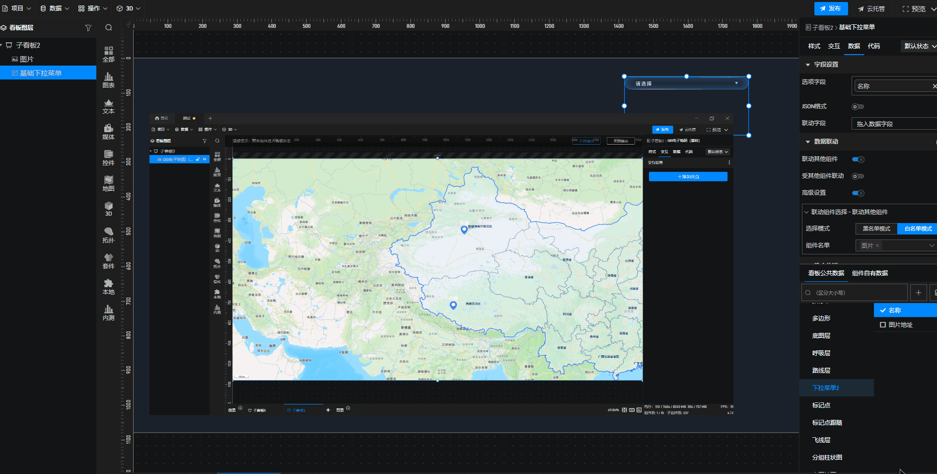 在可视化项目搭建中,常需通过下拉菜单实现素材切换展示。本文详解配置方法,帮助快速设置点击下拉选项,联动自动加载并展示对应图片、视频文件与实时监控画面,实现简洁直观的交互预览效果。