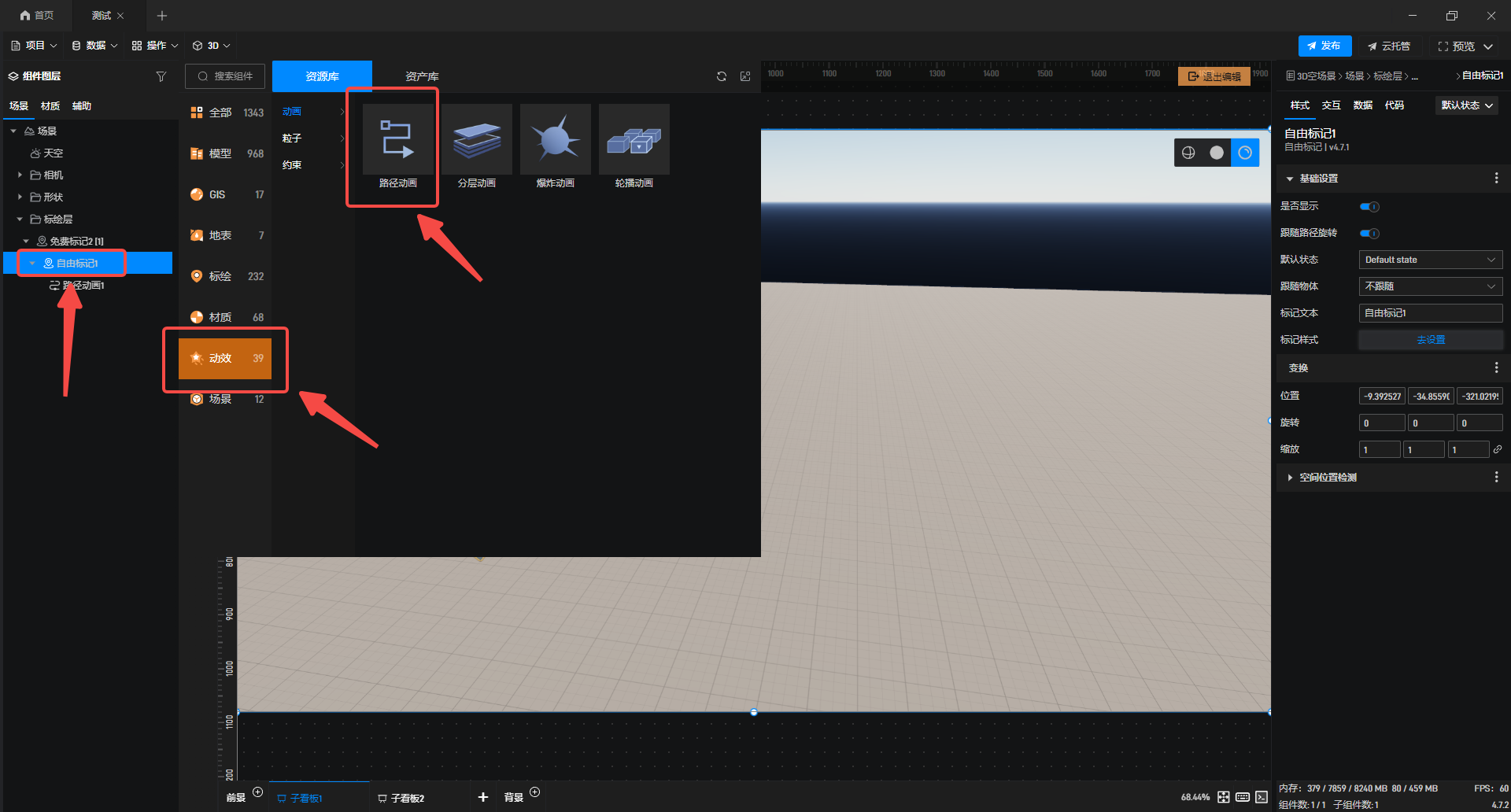 在三维可视化场景搭建中,为标记点配置路径动画是实现动态展示、轨迹模拟的常用操作。本文将简要介绍为标记点添加并设置路径动画的实现方法,帮助你快速完成场景动态效果的制作。