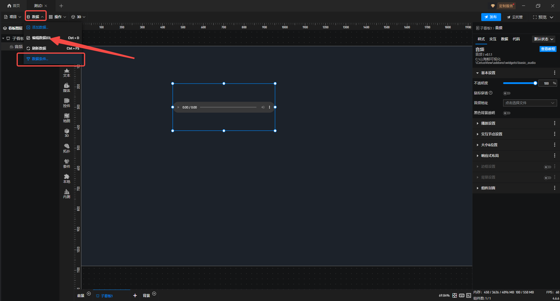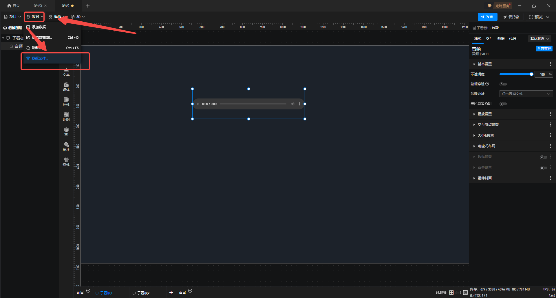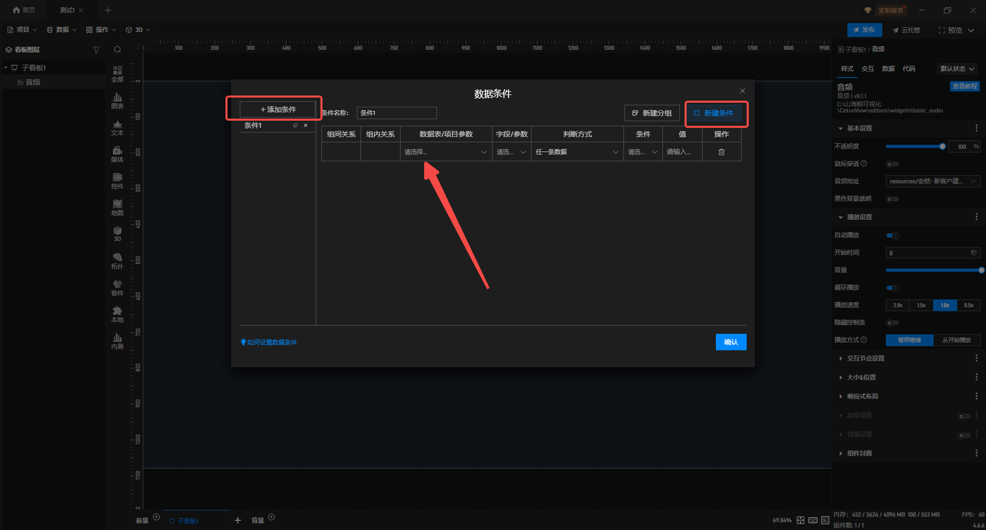 2.在左上角“数据”点击添加“数据条件”。