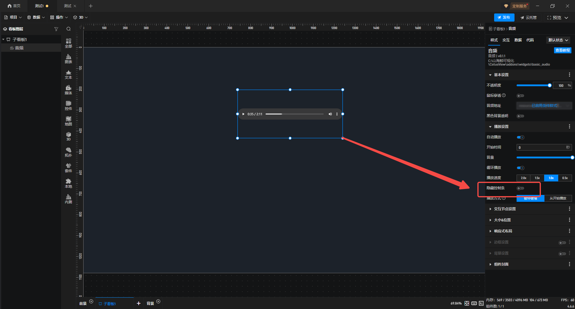 4.若是只想有声音,不想显示组件,可以开启“隐藏控制条”。
