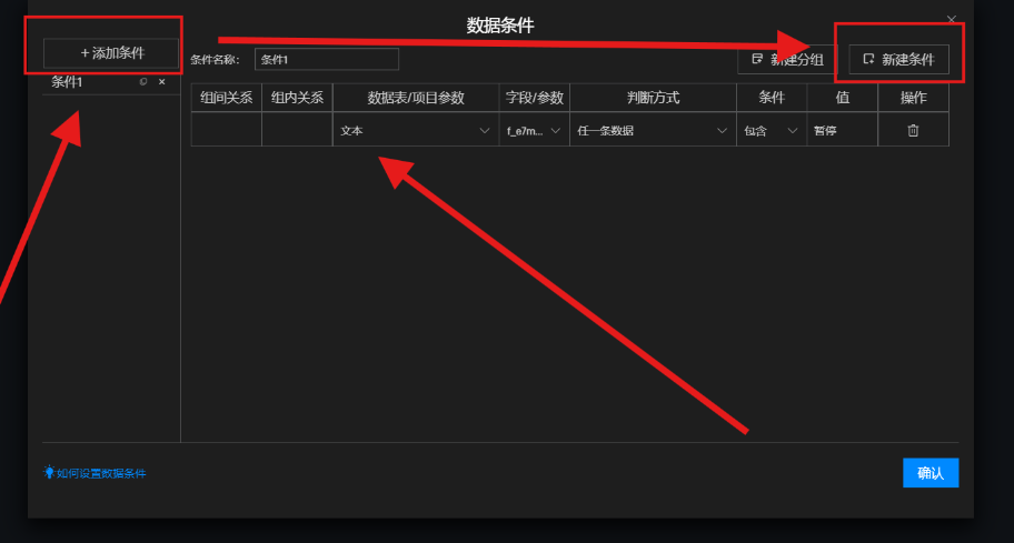接着点击“添加条件”再点击“新建条件”,勾选需要判断的字段以及判断值。