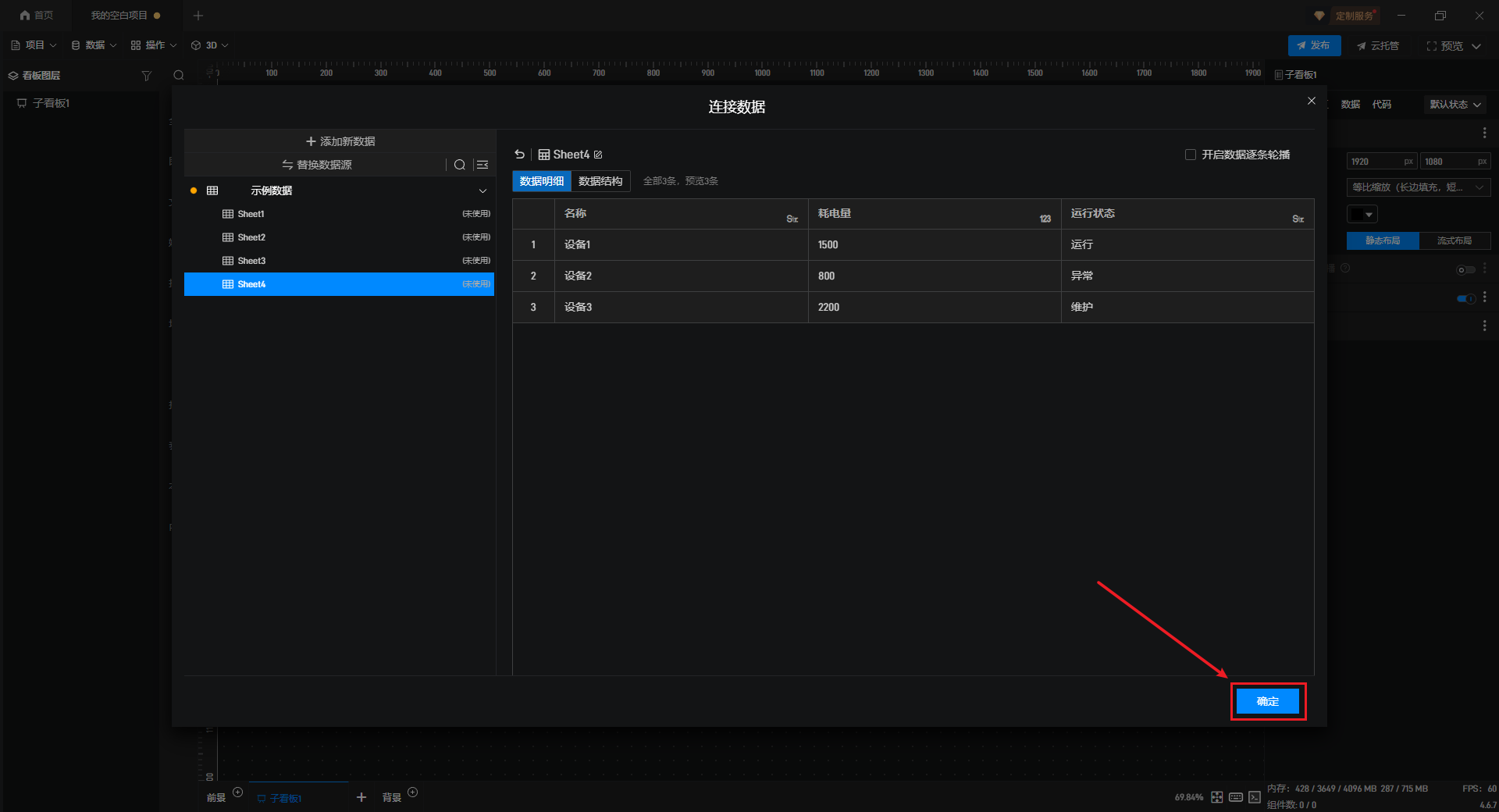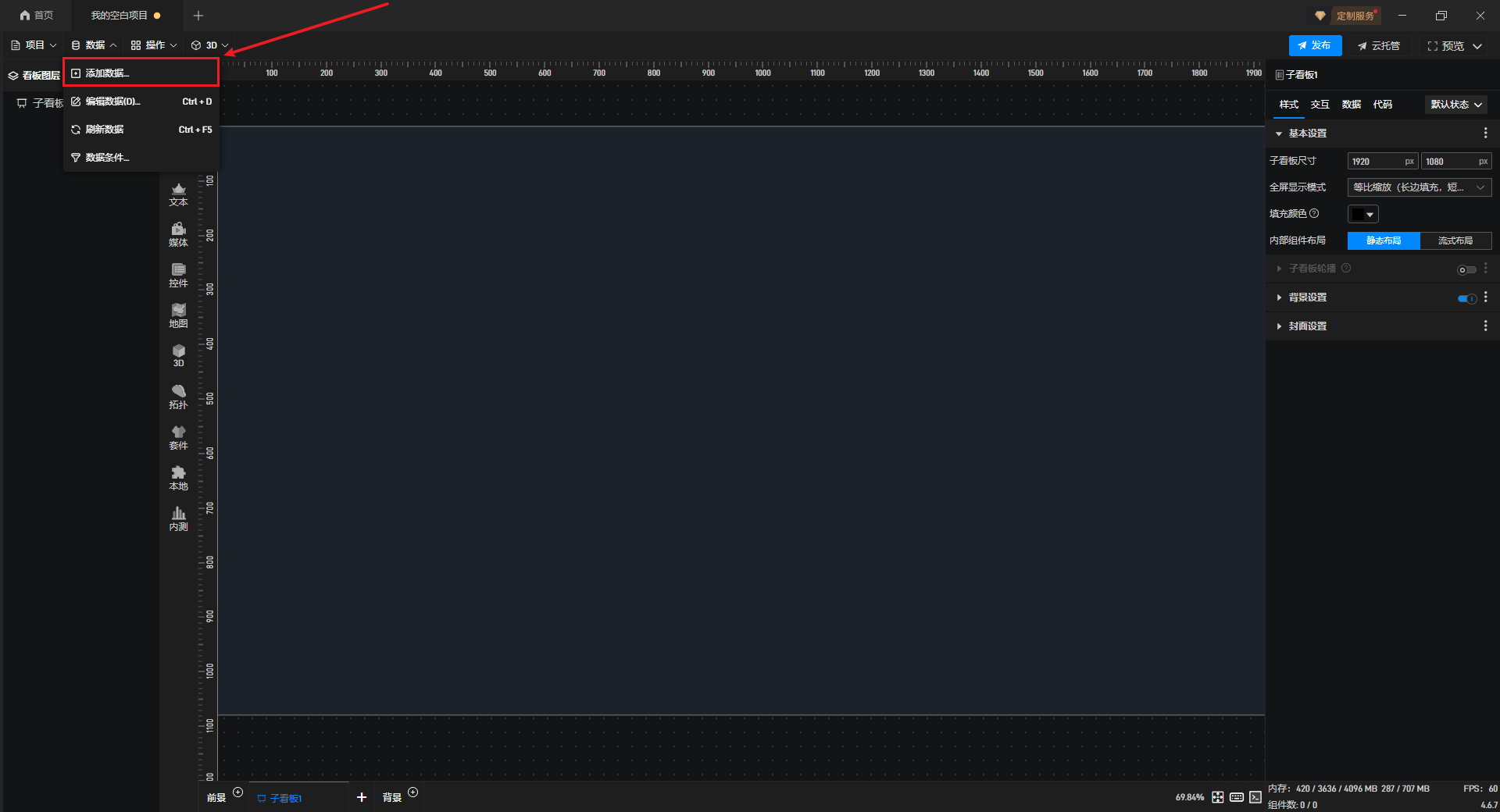 1. 首先,在项目上分“数据”处点击“添加数据”。