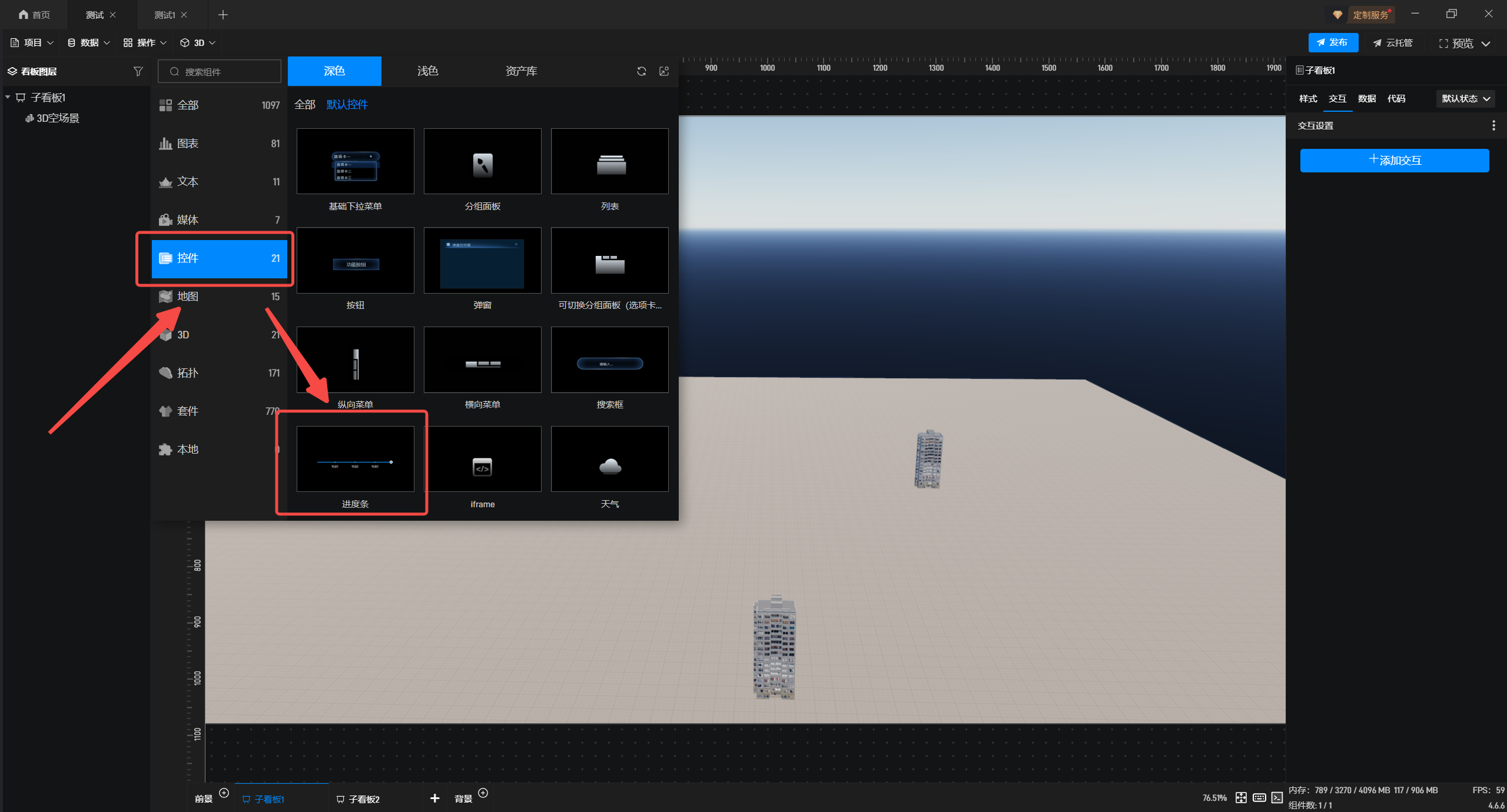 4.在左侧组件库中,添加“进度条”组件至项目中。