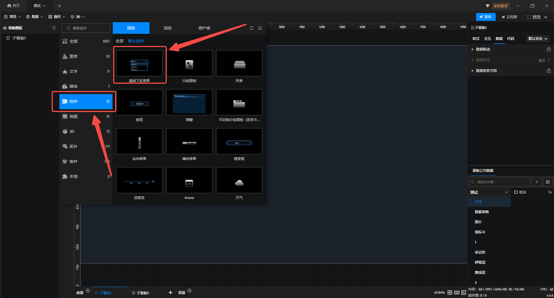 1..将“基础下拉菜单”组件添加至项目。