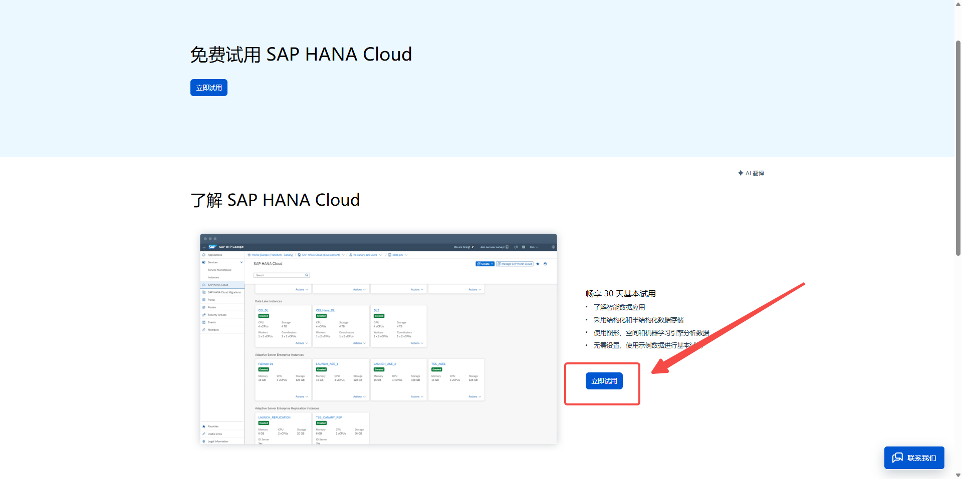 1.可以通过此链接访问 SAP HANA 试用页面:试用 | SAP HANA Cloud