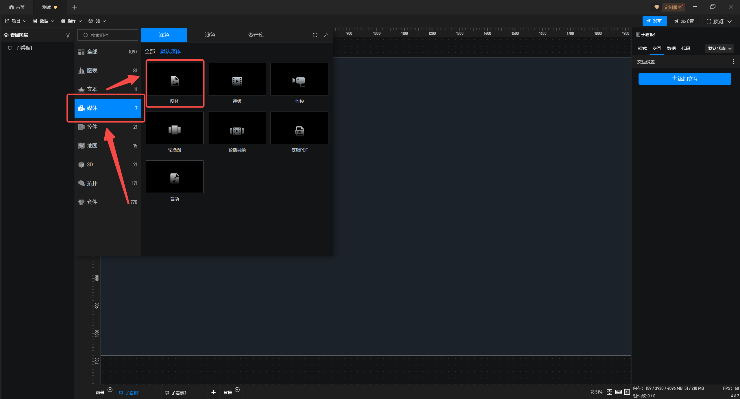 1.在左侧组件库中,添加“图片”组件至项目中。