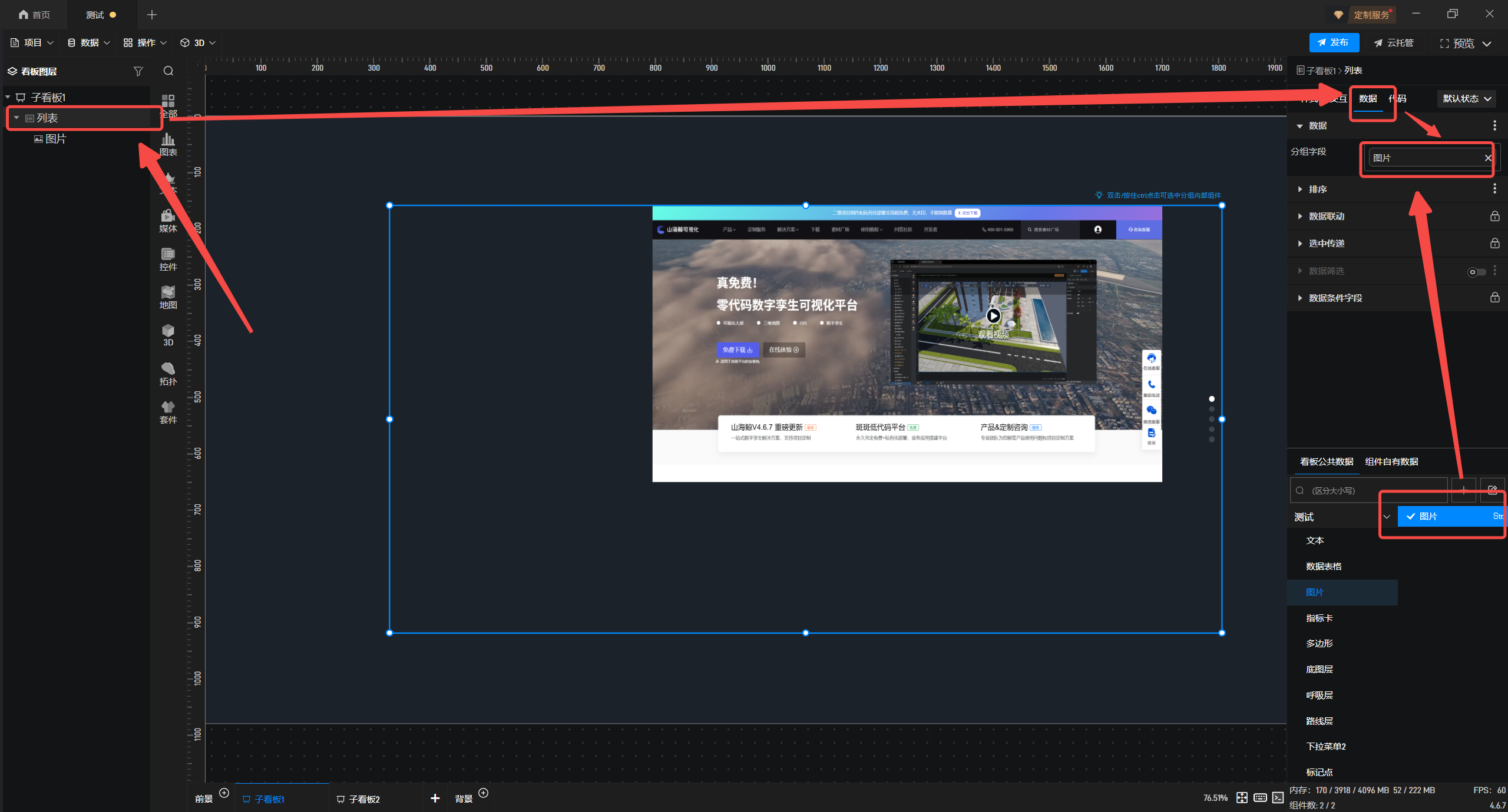 接着将“图片”组件与“列表”组件成组。