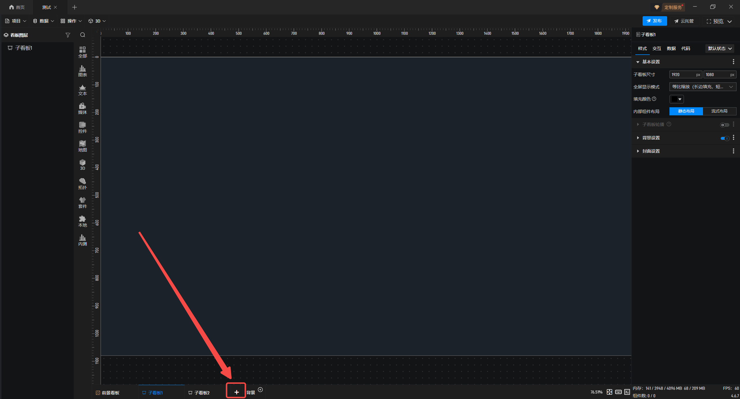 接着在新的看板中,在左侧组件库中添加“基础单行文本”组件至项目中。