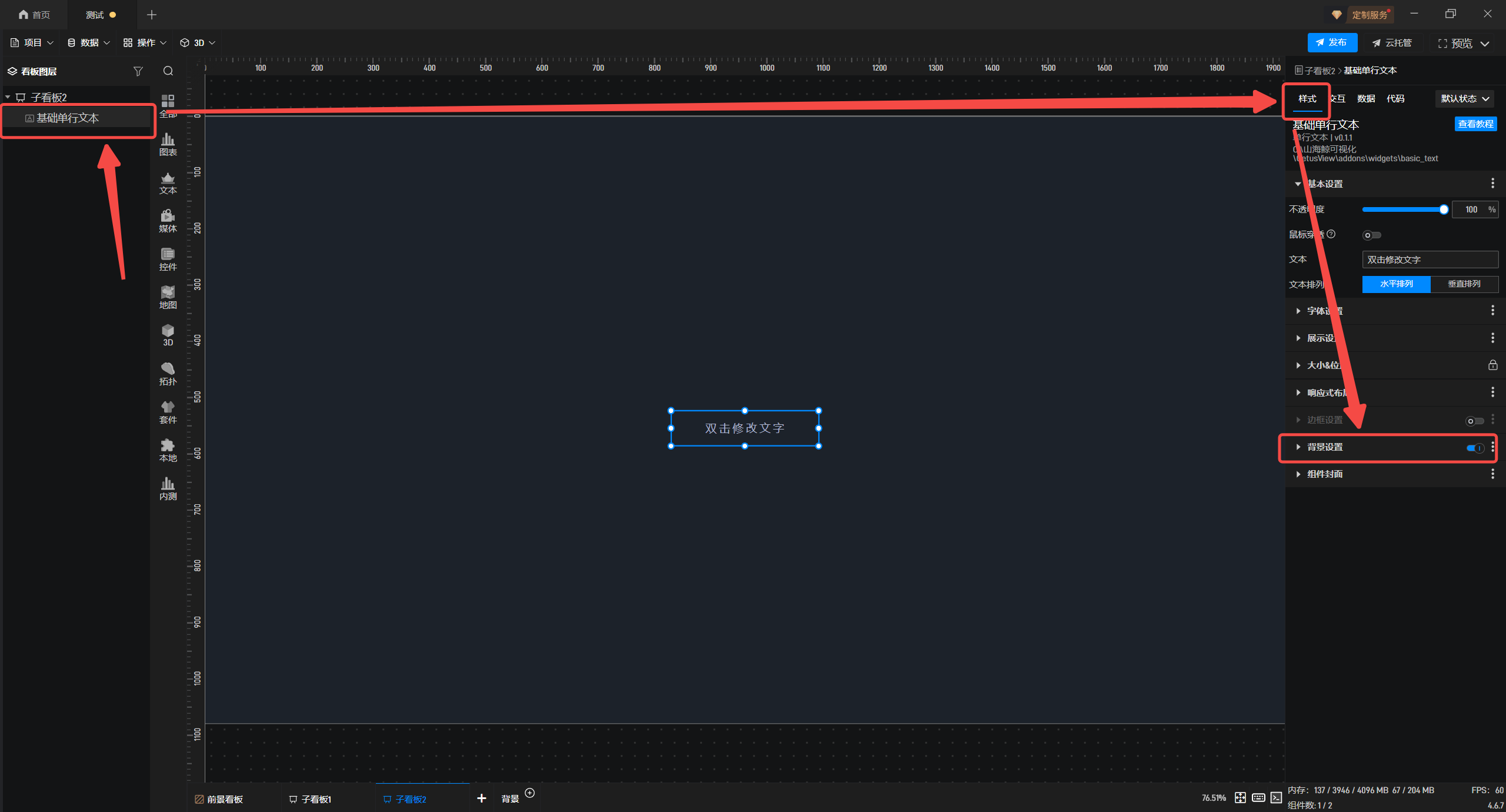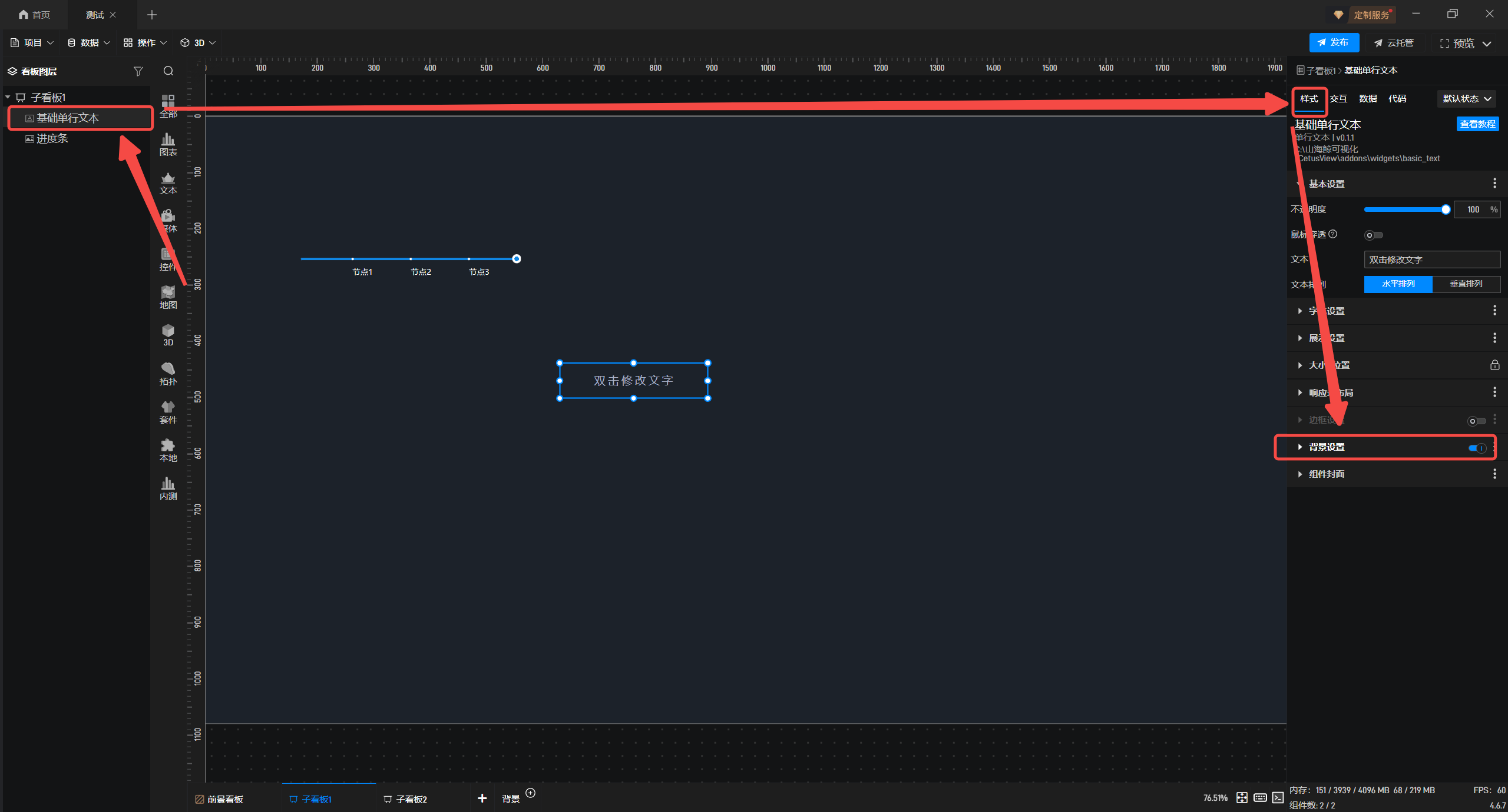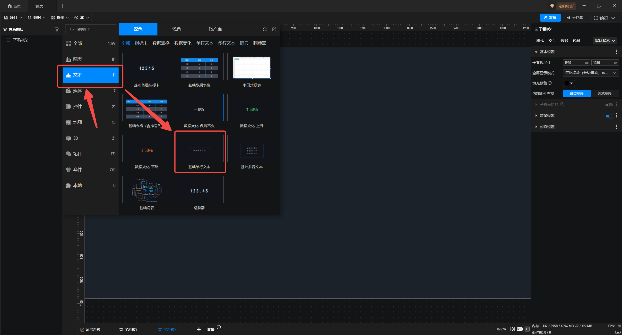 接着在上述步骤中,添加 “基础单行文本” 组件看板。