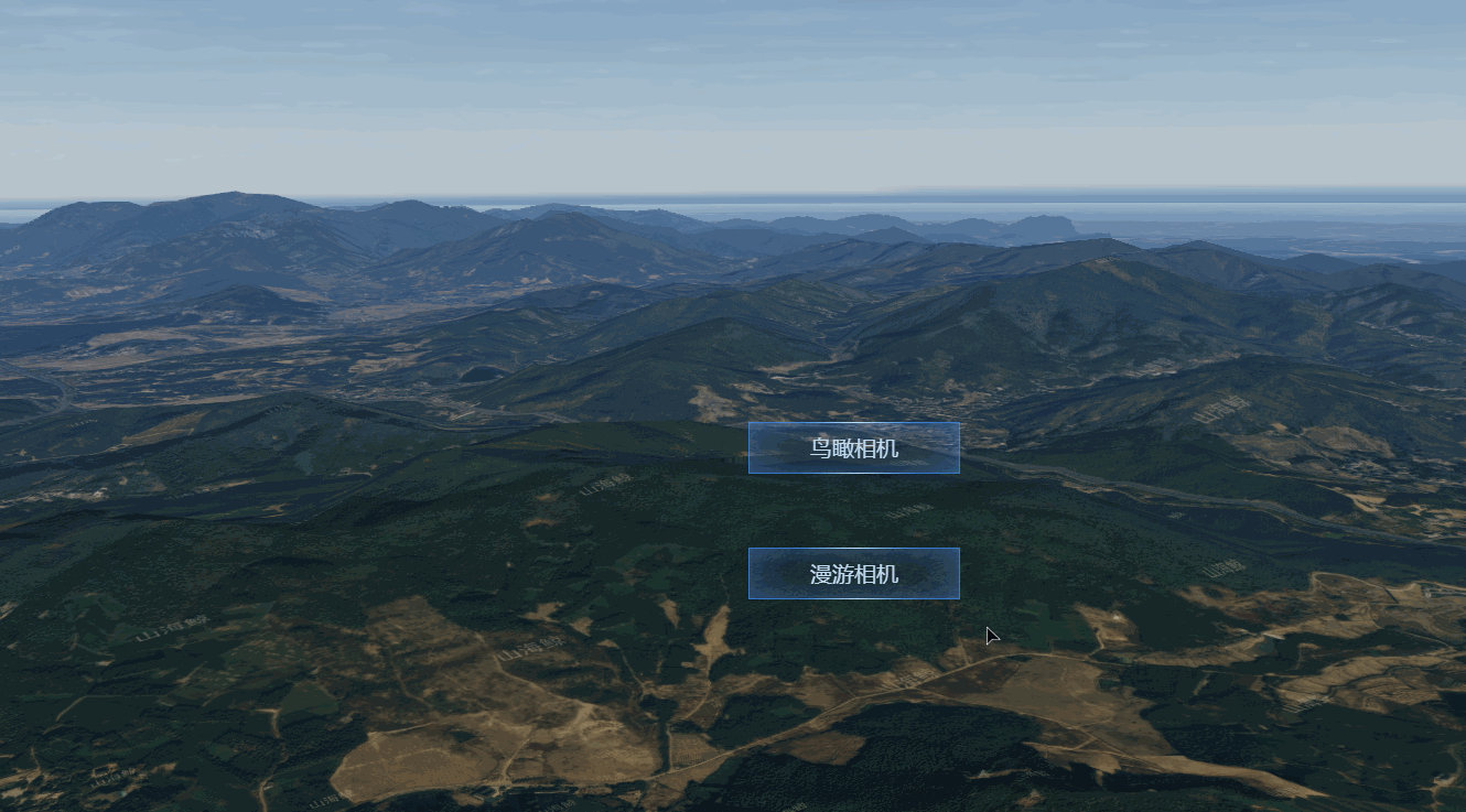 两个按钮的“主相机”设置项分别对应“鸟瞰相机”和“漫游相机”,如下图所示: