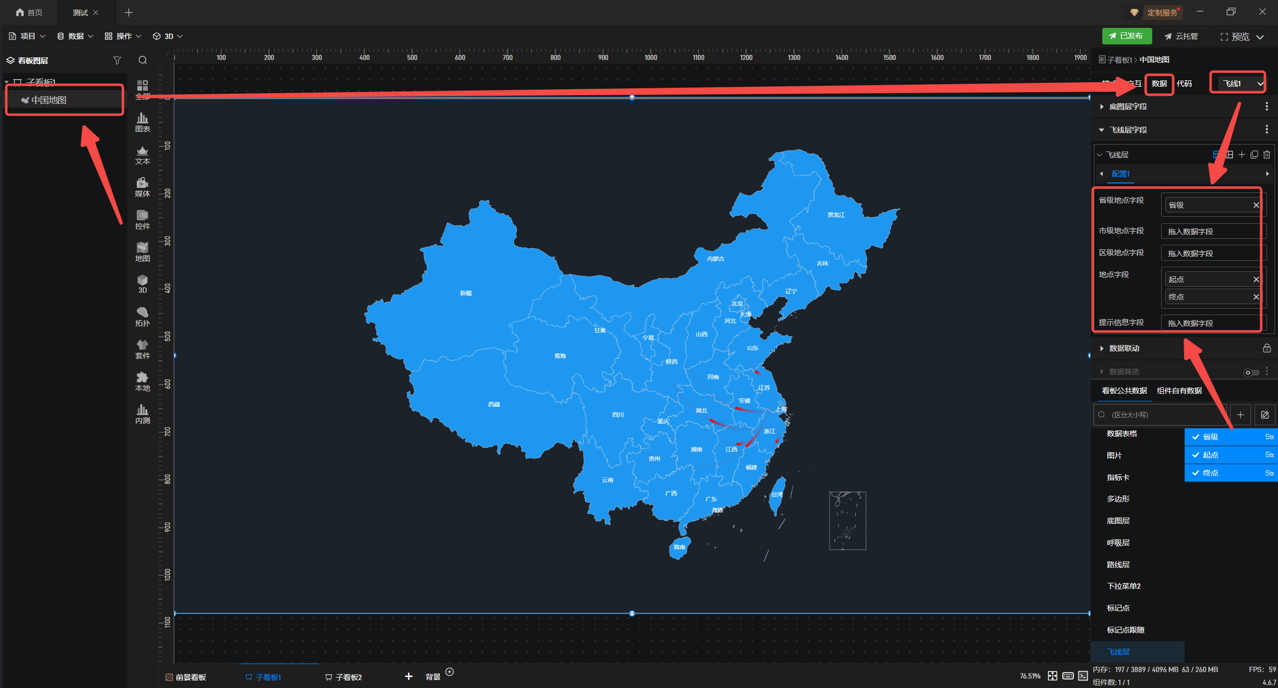 在中国地图的数据可视化场景中,飞线是展现地理空间关联的重要形式,多飞线层的切换展示能让地理数据的呈现更具层次与灵活性。如何在中国地图组件中实现两层不同飞线的无缝切换,是提升地理数据可视化交互体验与信息传递效率的关键问题,也能更好地满足多维度地理关联数据的展示需求。