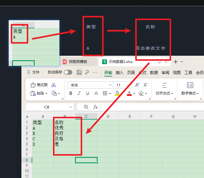 1、给类型文本勾选数据2、设置数据条件去判断类型3、给名称文本使用条件样式4、最后效果如下: