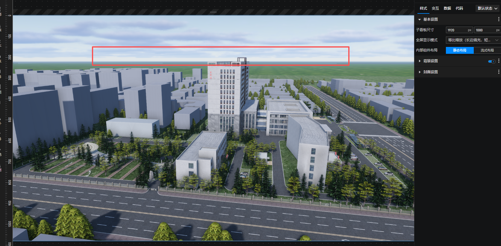 如果不想要太空旷的话,可以做以下处理:1、把白模的范围再扩一些出去;2、根据场景调整雾效(推荐),点此参考雾-天空 - 项目制作 - 数字孪生开发教程-可视化大屏制作教程 - 山海鲸可视化;3、可以看下GIS影像的效果是否符合需求,点此参考GIS影像 - 项目制作 - 数字孪生开发教程-可视化大屏制...