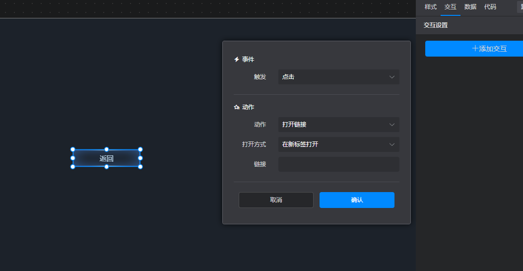可以的,使用项目参数即可:1、添加一个项目参数用来接收返回页面的URL2、从其他系统点击进来时,在项目访问链接中给项目参数传递页面URL地址,点此参考在项目里面拿不到访问路径里的参数key的值,可能是什么问题 - 数字孪生可视化产品交流社区3、按钮上添加打开链接交互,链接用“{:xxxx}”的形式填...
