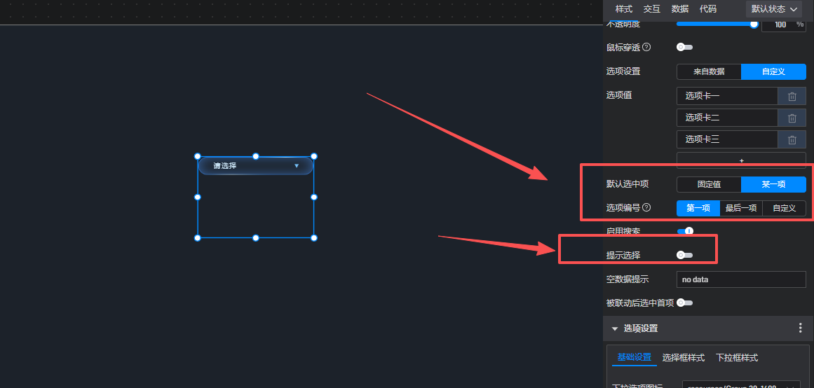 关闭请选择即可,默认会选中第一项,或者也可以指定一下默认选中项