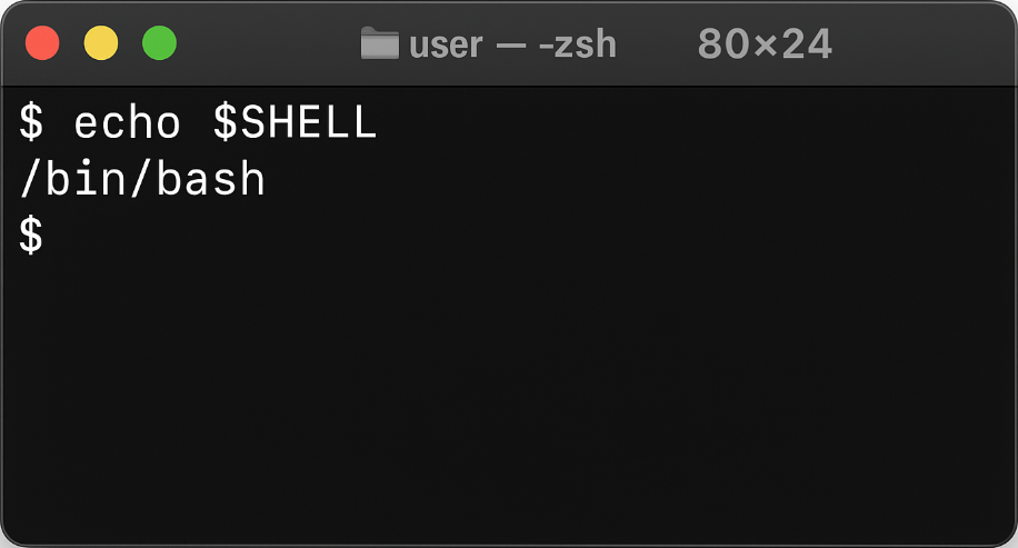 首先,在终端中输入“echo $SHELL”查看当前默认的shell是bash还是zsh。例如苹果系统输出的是/bin/bash,说明默认的 shell 是 bash 而不是zsh。