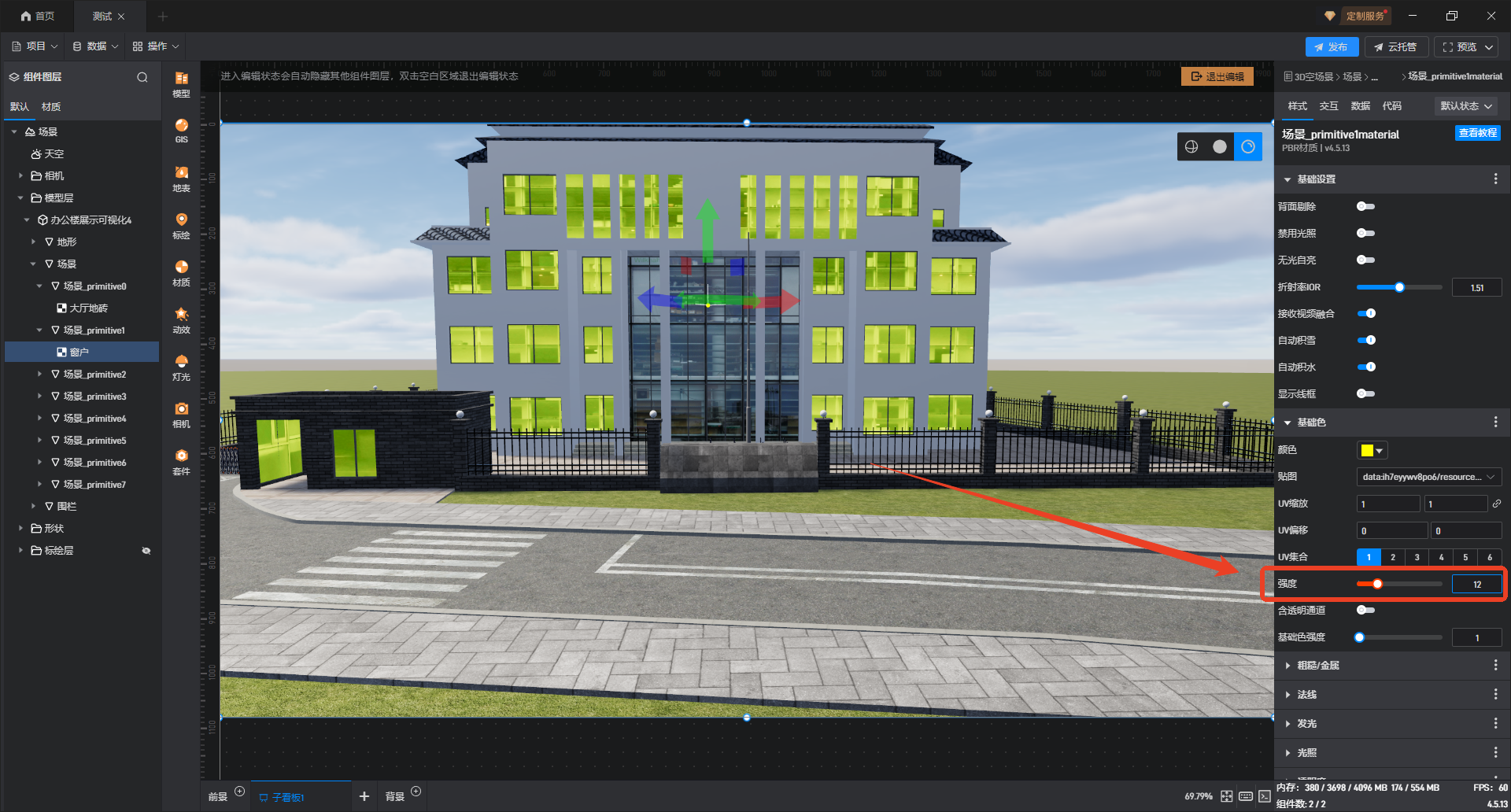 可以在基础色调节强度,如果无法达到效果,可以在建模软件调节