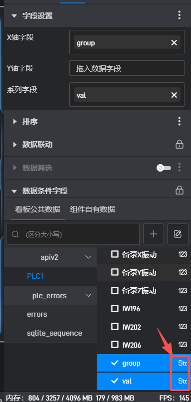 我改过的字符串格式是这样的,"group":["主泵温度","主轴温度","主泵X振动","主泵Y振动","主泵Z振动","备泵温度","备轴温度","备泵X振动","备泵Y振动","备泵Z振动"],"val":[0,0,0,0,0,0,0,0,0,0]},这个val的数据格式是不是不对,正确的需要怎样变一下啊?