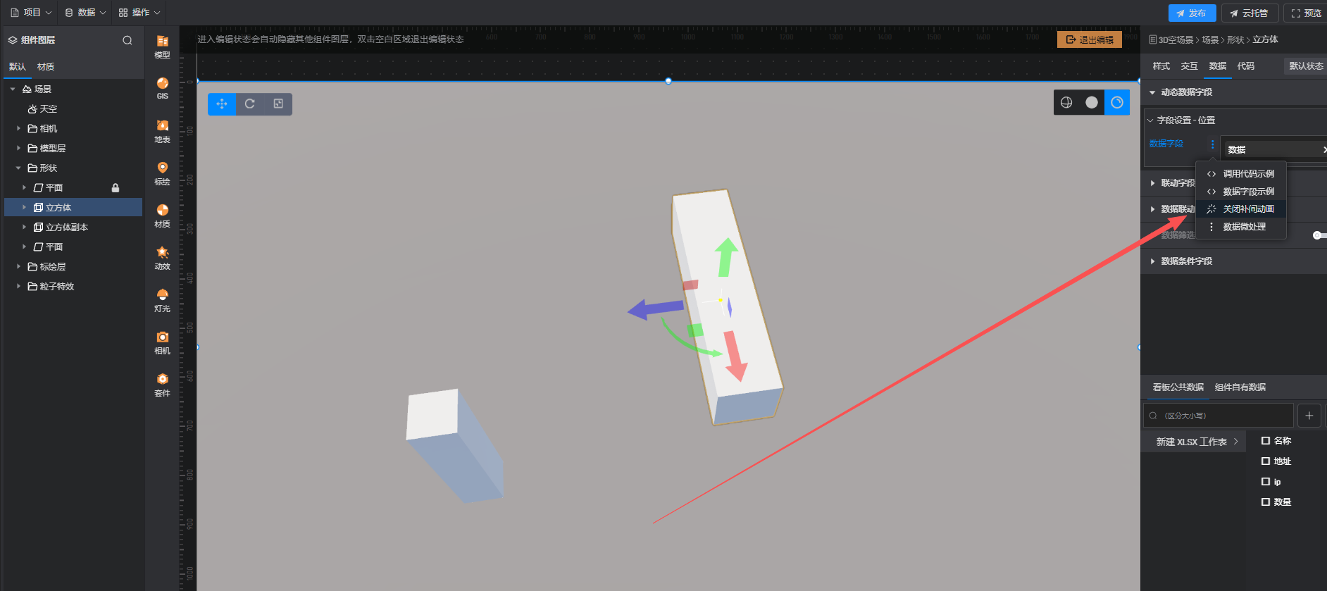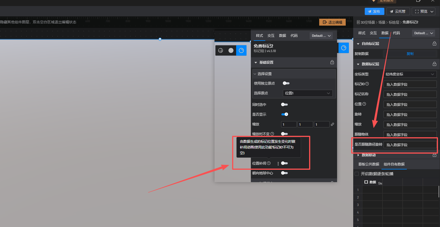 目前的处理办法是使用数据标记点:添加一个标记组,然后把模型作为材质添加到标记主体里(点此参考标记点使用教程:标记点概述 - 项目制作 - 数字孪生开发教程-可视化大屏制作教程 - 山海鲸可视化),用标记组的位置补间功能,然后标记数据这边需要勾选“是否跟随路径旋转”,这个字段的值用false,这样就不会旋转了
