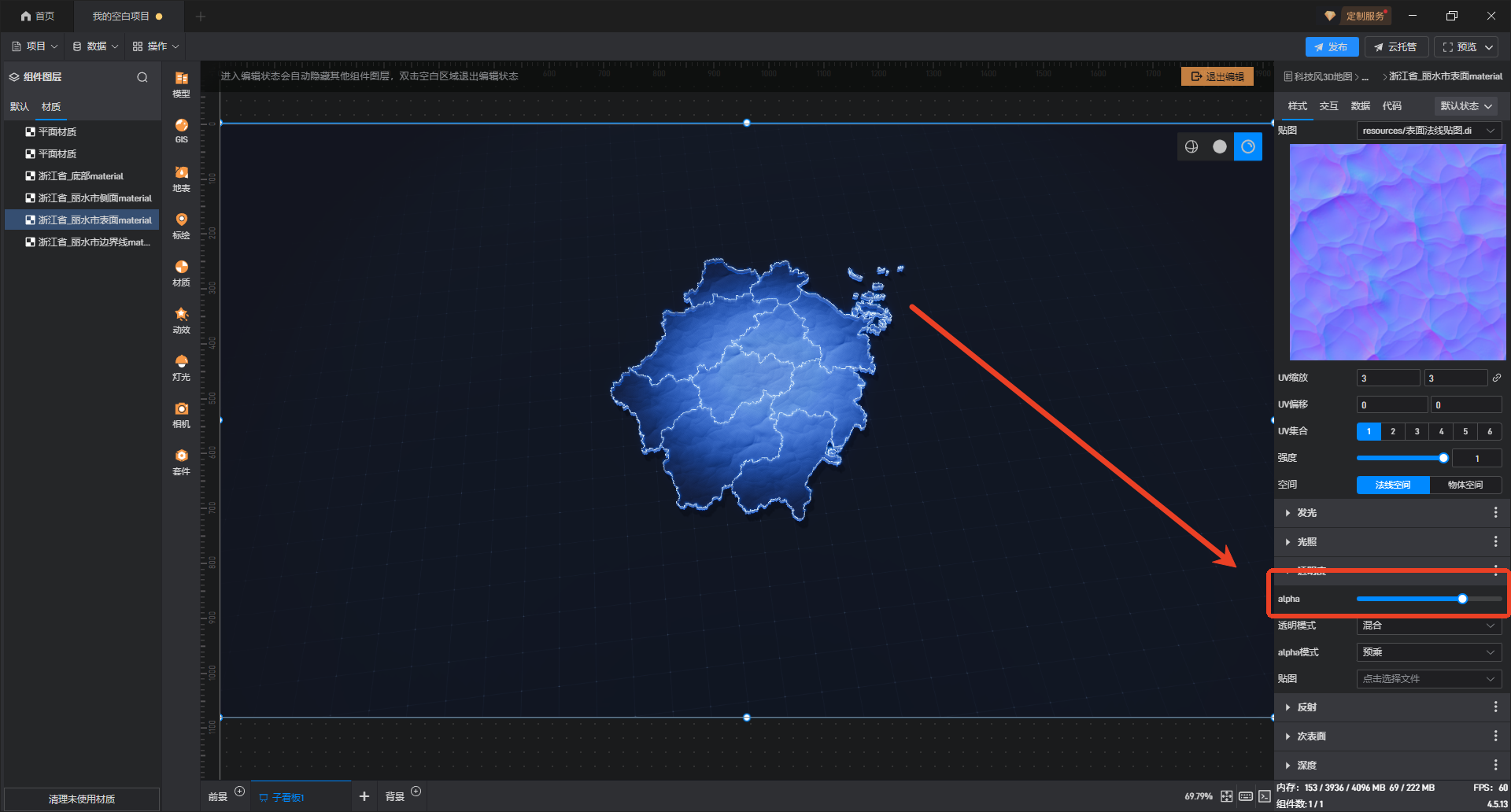 因为点击会忽略带透明的物体,需要将地图表面材质的透明度中的alpha调到最大。