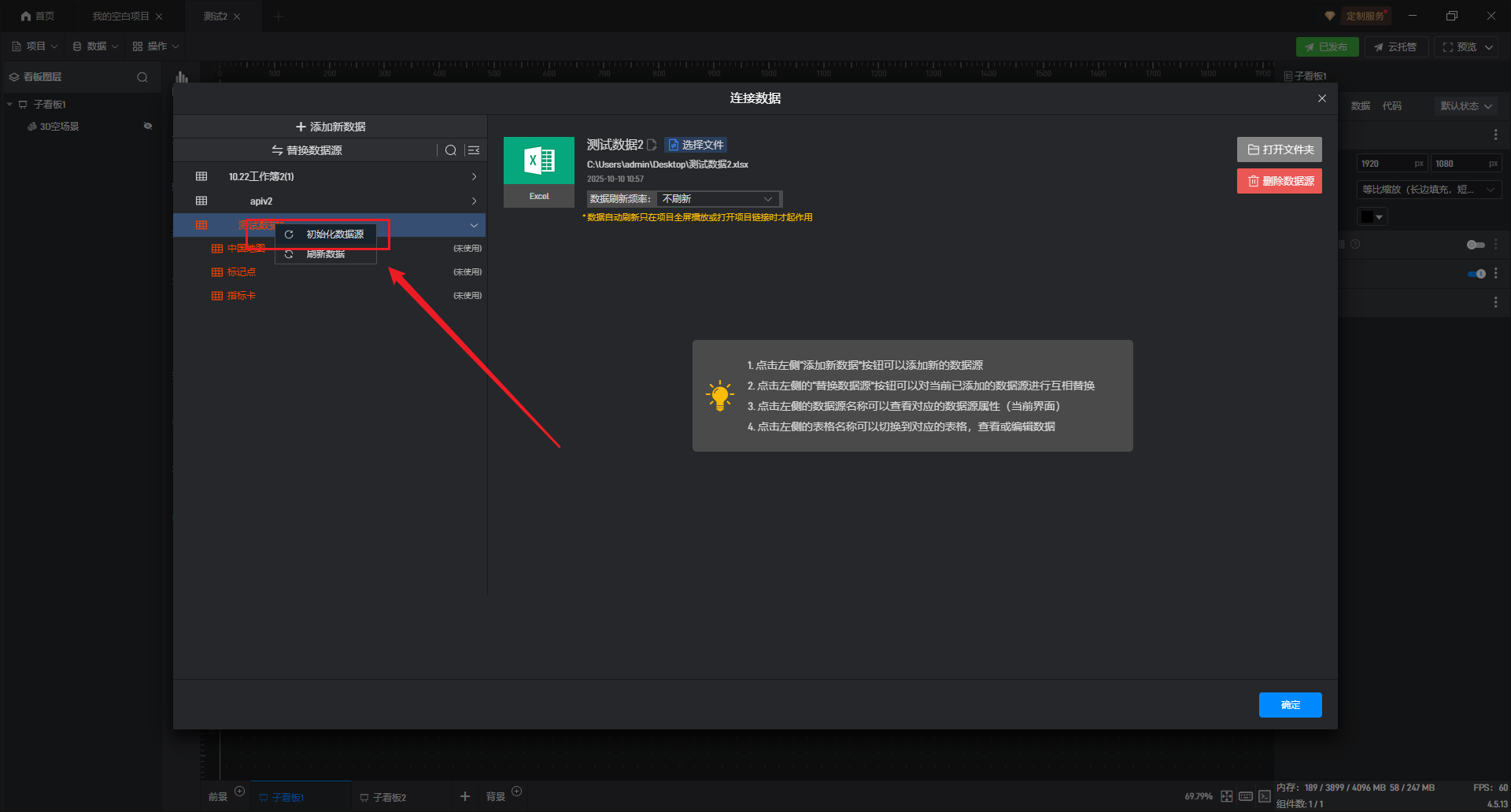 可以右击初始化数据源