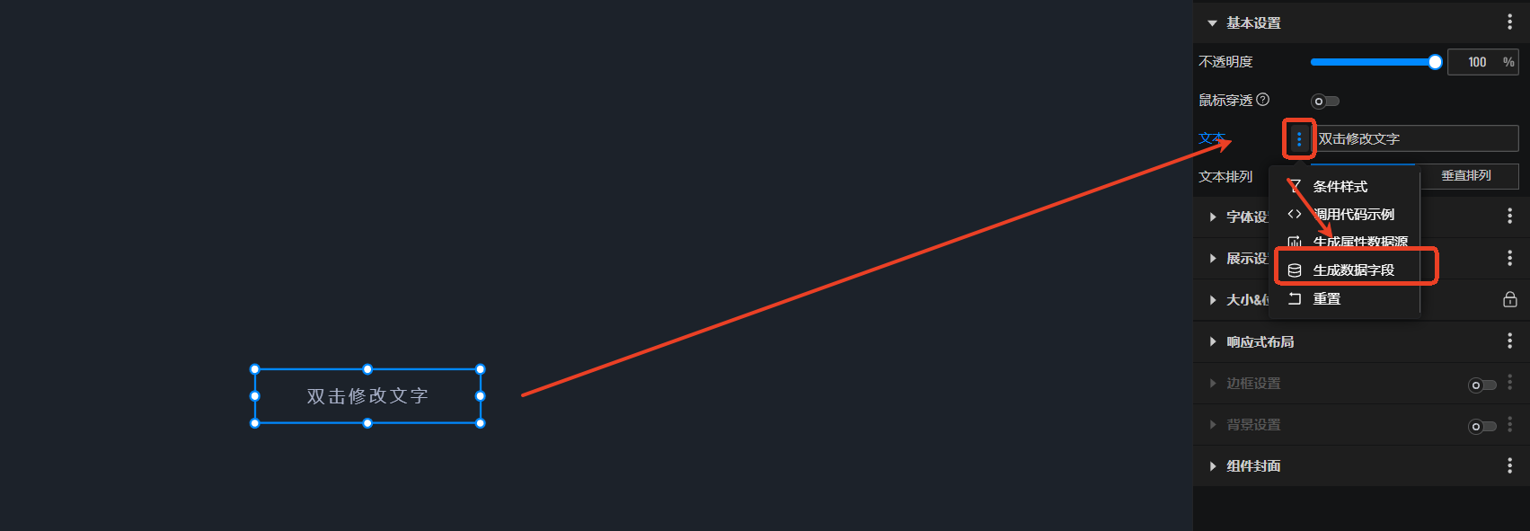 选中文本组件,设置文本数据字段,勾选数据即可。