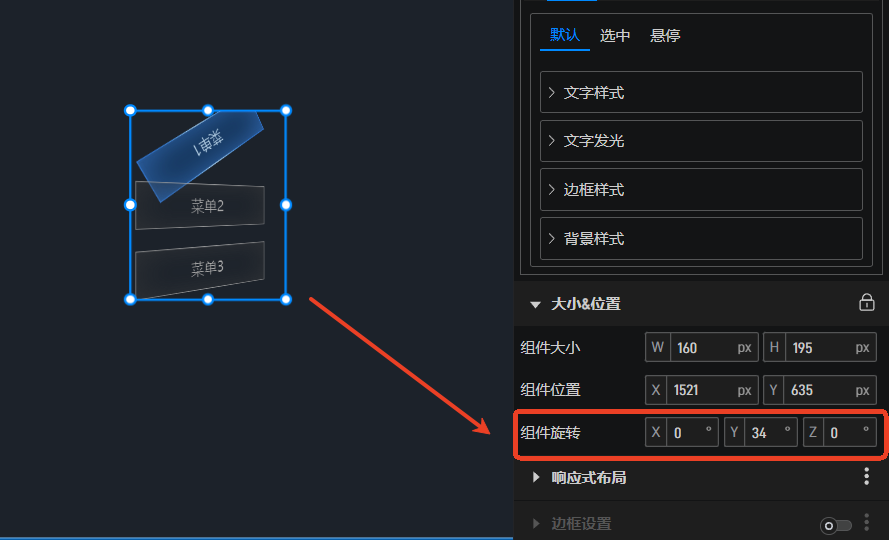 以纵向菜单为例,在样式中设置组件旋转角度即可。