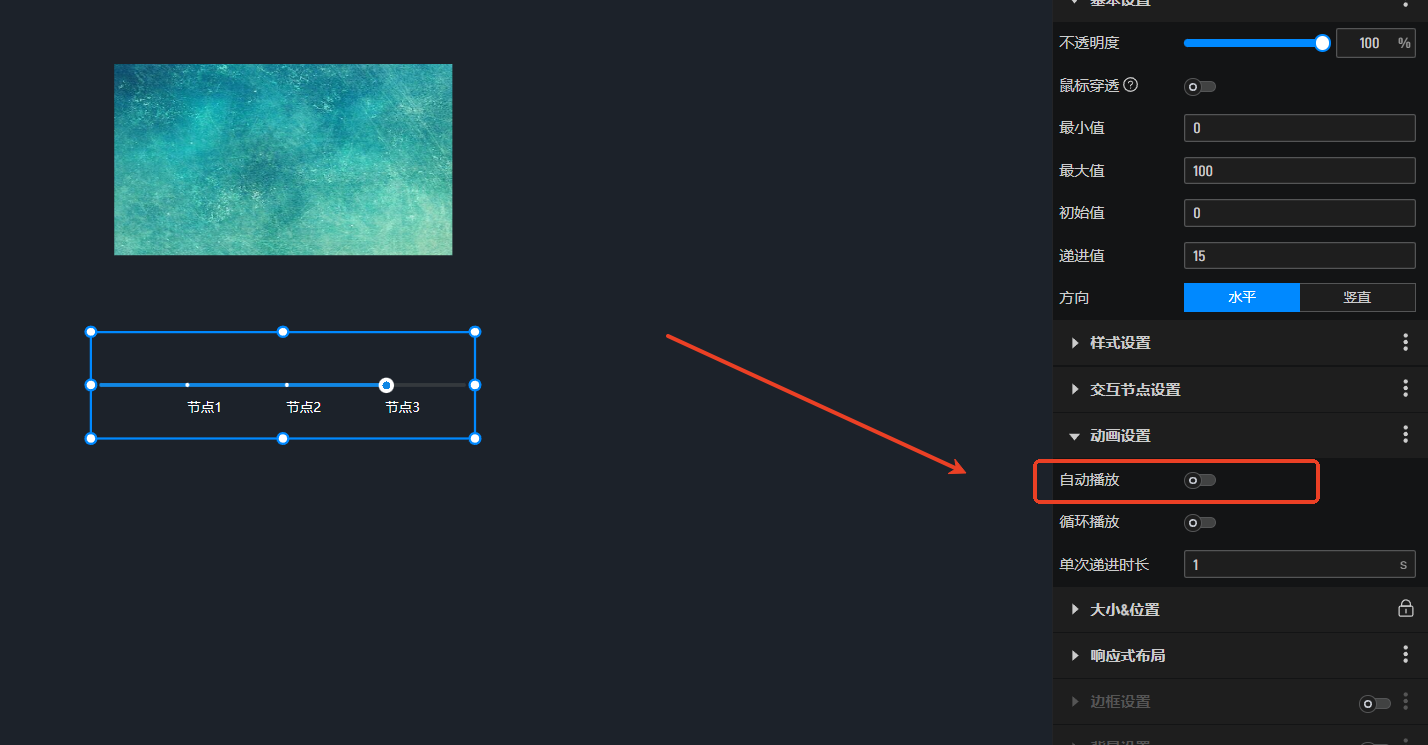 1.选中进度条,在样式中的动画设置中关闭自动播放就可以拖动进度条。