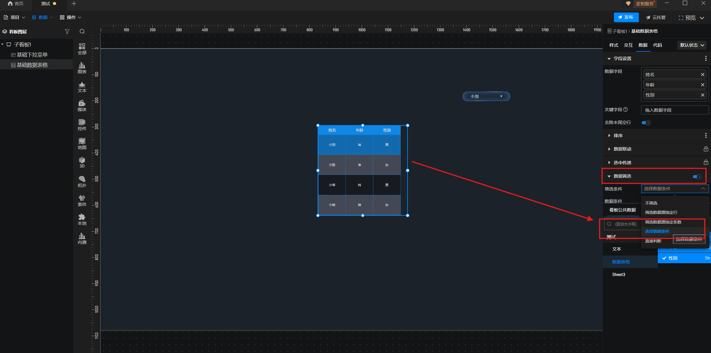 比如在图书数据表中有一列属性为书架,下拉菜单一次只能选中一个书架的数据,怎么才能同时选择多个书架的数据。