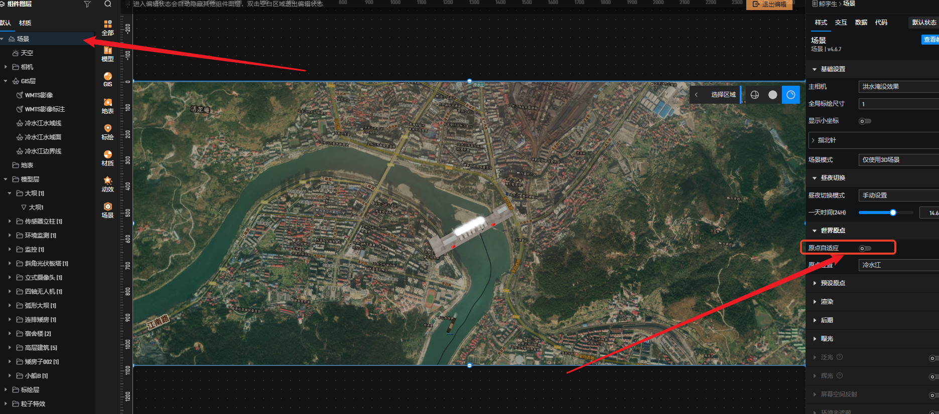 在场景中关掉原点自适应。