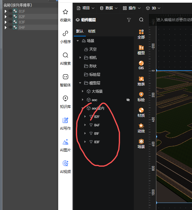 这里在建模软件内为顺序排列,但是导入山海鲸后模型我排序乱了