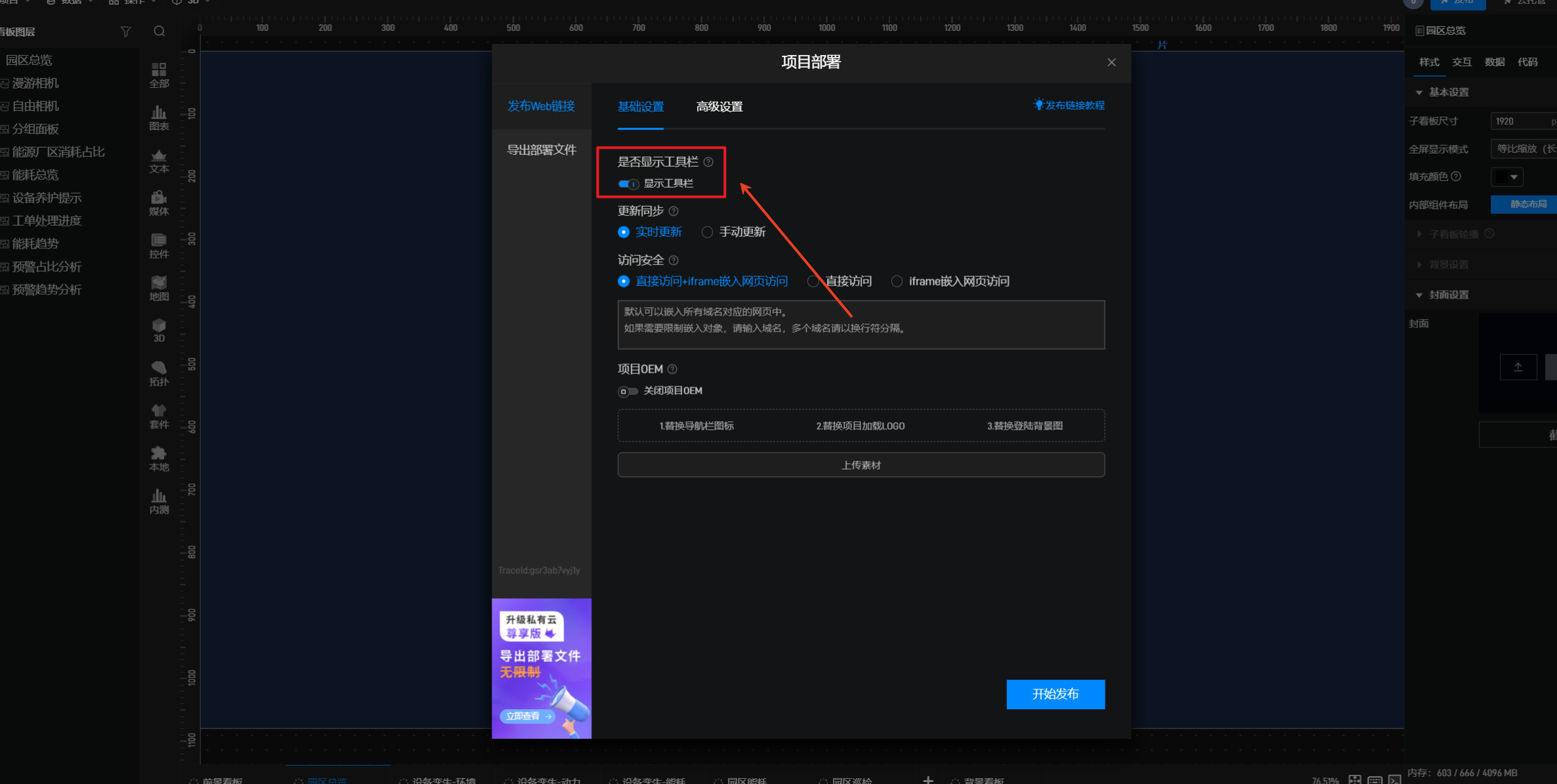 在发布页面关闭显示工具栏。