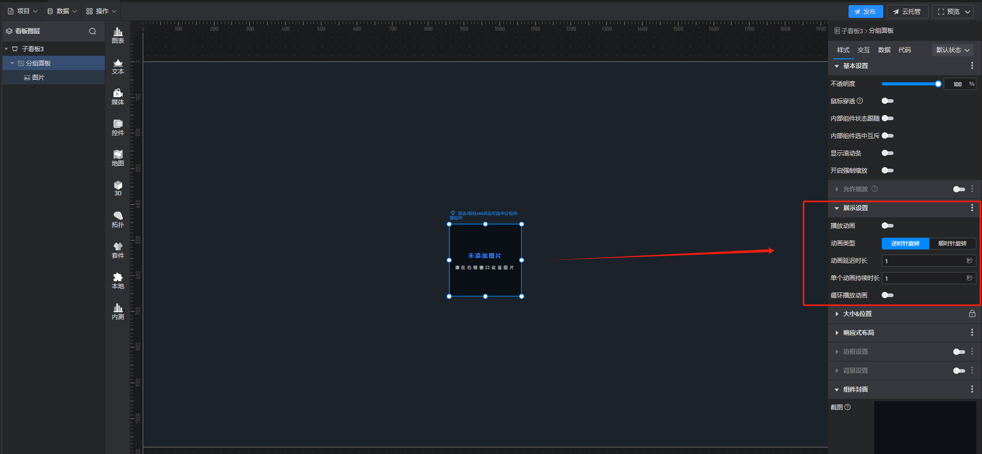 可以参考此链接:如何解决分组面板中组件开启展示动画后位置发生偏移的情况? - 数字孪生可视化产品交流社区