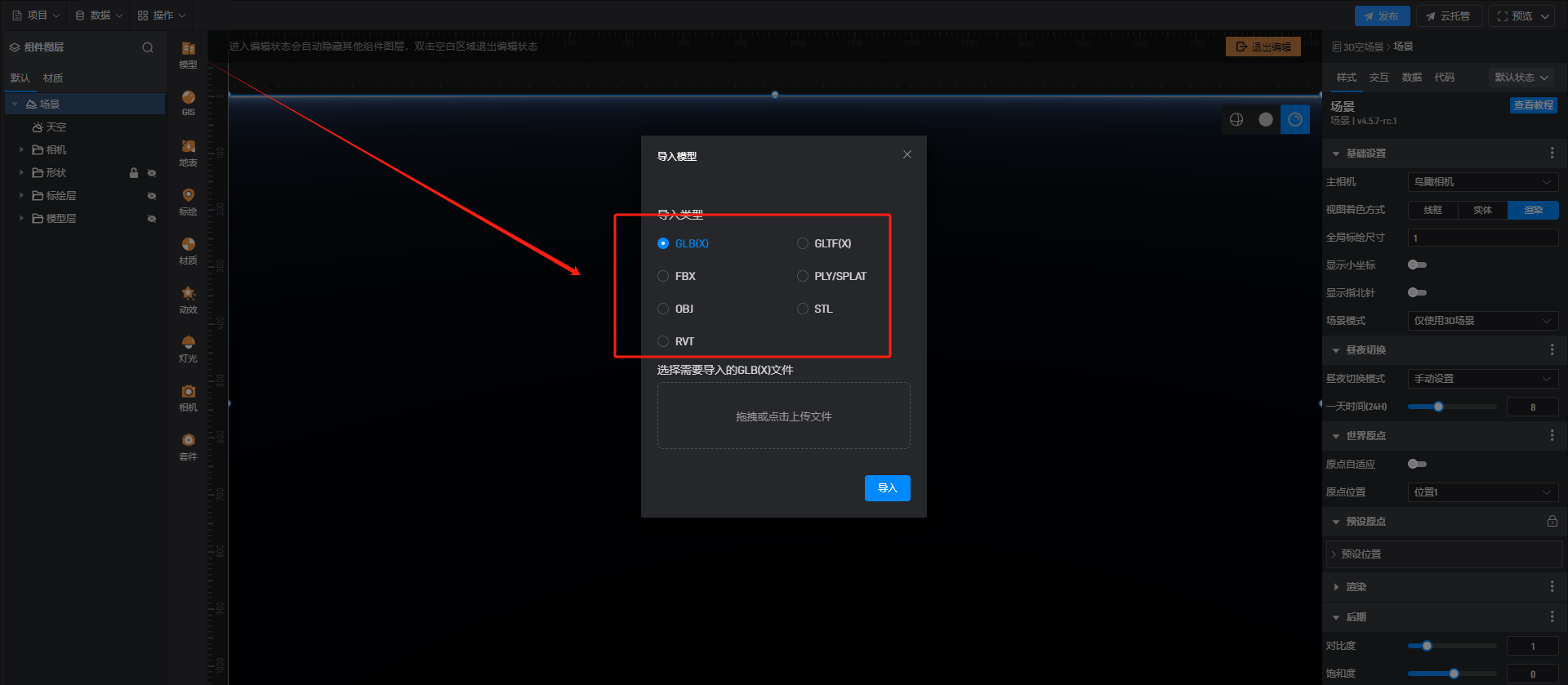山海鲸可视化目前不支持导入SP3D做的建筑车辆模型,如需导入,需要先转换一下格式,目前山海鲸支持GLB/GLTF等格式的模型文件导入。