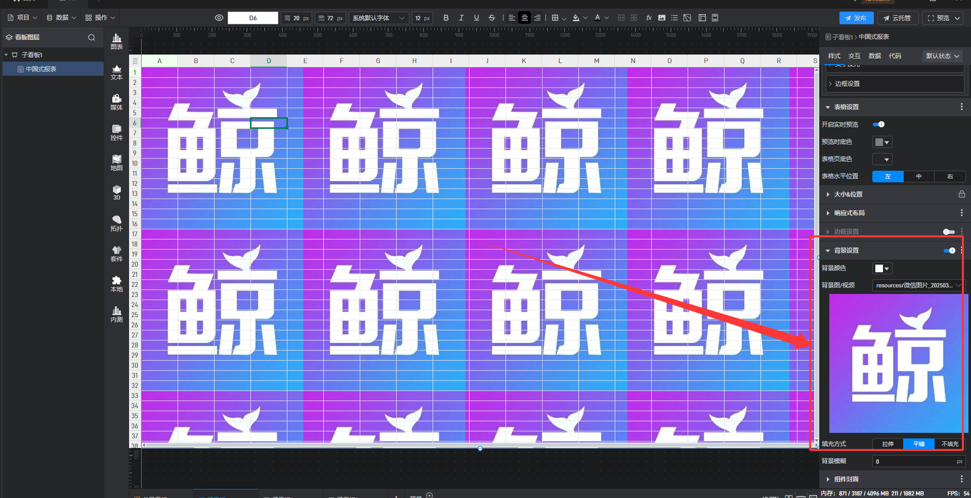 中国式报表设置背景颜色是需要在表格设置中,去修改表格页底色的。