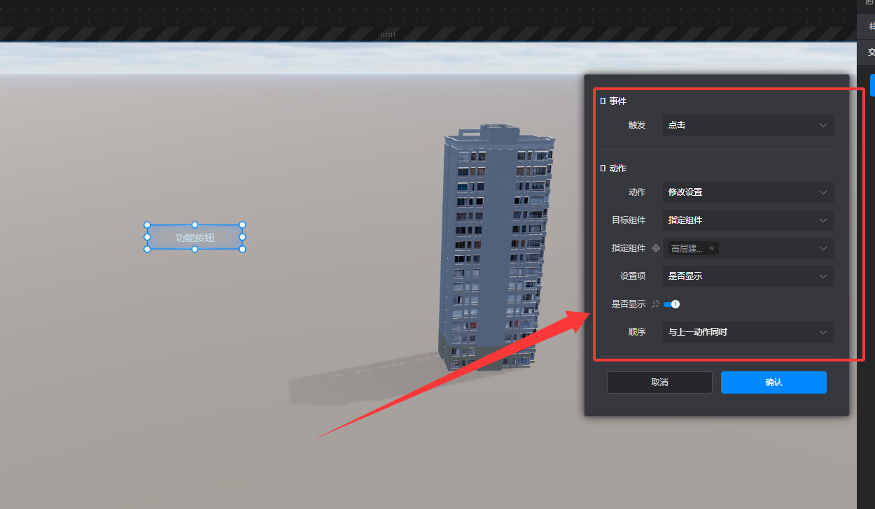 2、三维场景中的组件大多数不是通过不透明度控制隐藏的,是通过是否显示设置项控制组件的显示隐藏的,因为是否显示设置项,要么显示,要么隐藏,所以暂不支持渐变消失
