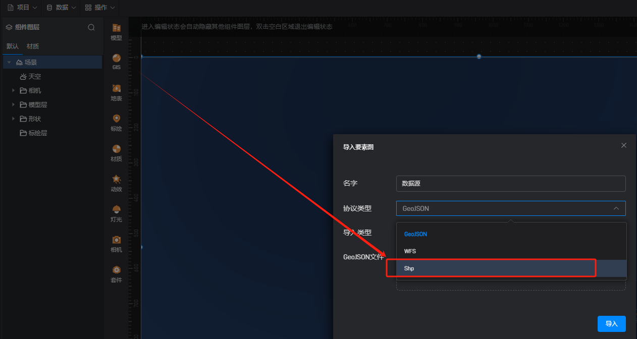 鲸孪生中添加GIS要素即可,点此参考要素 - 项目制作 - 山海鲸可视化