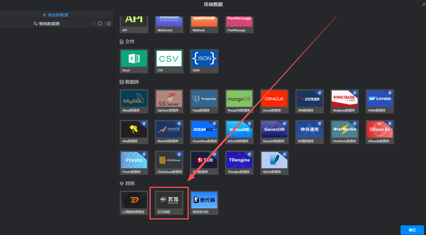 山海鲸可视化中可以直接添加瓦石物联中台的数据