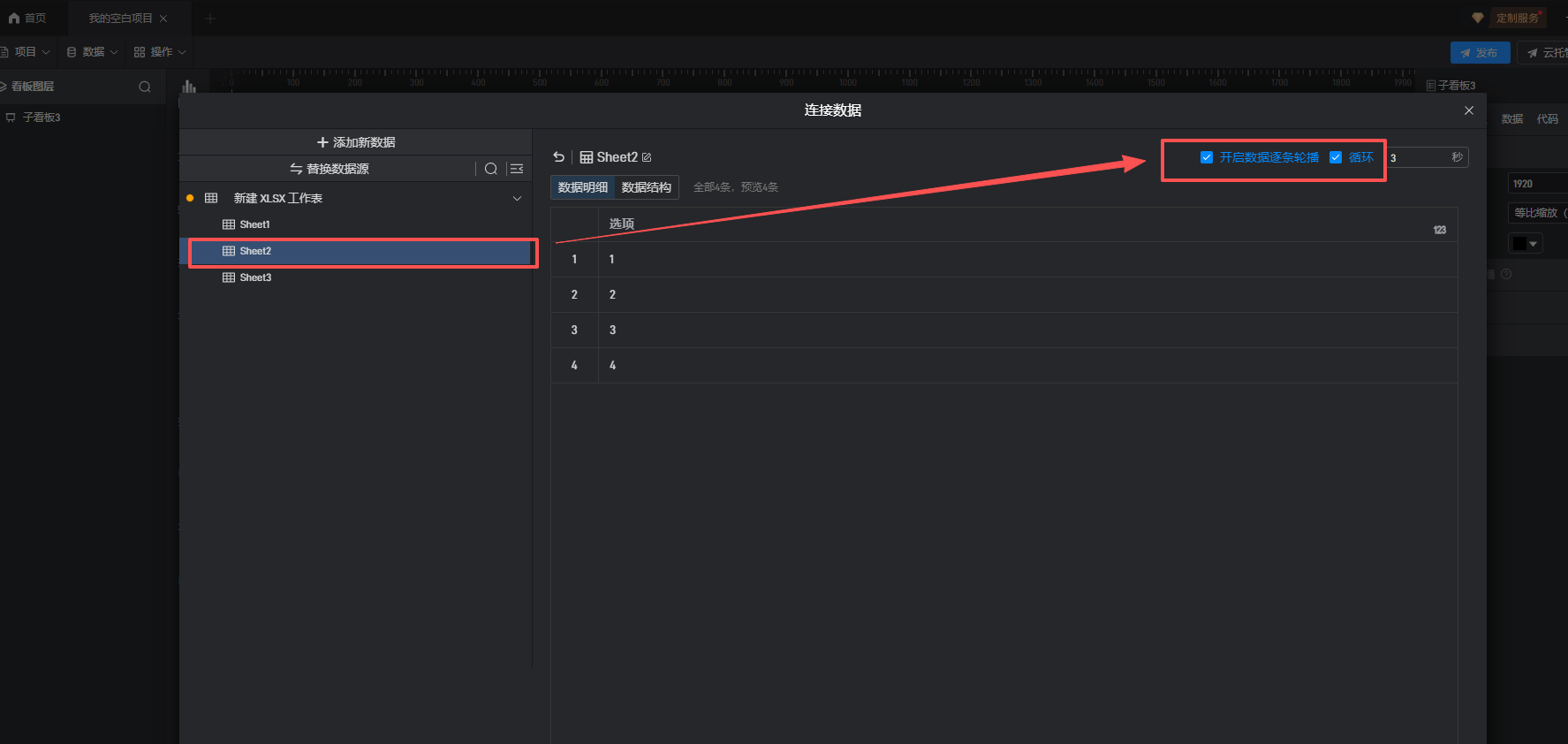 2、数据表中开启了数据逐条循环轮播