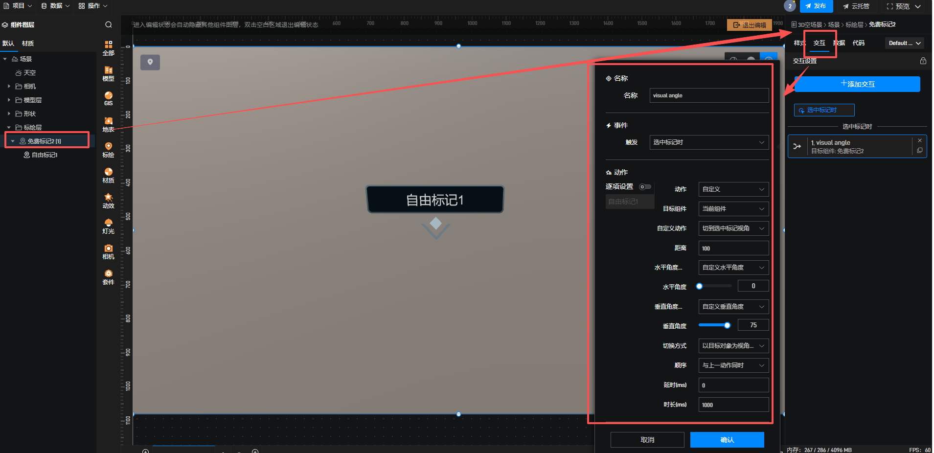 默认添加的标记组上会自带一个视角切换的交互,把这个交互删掉就可以了