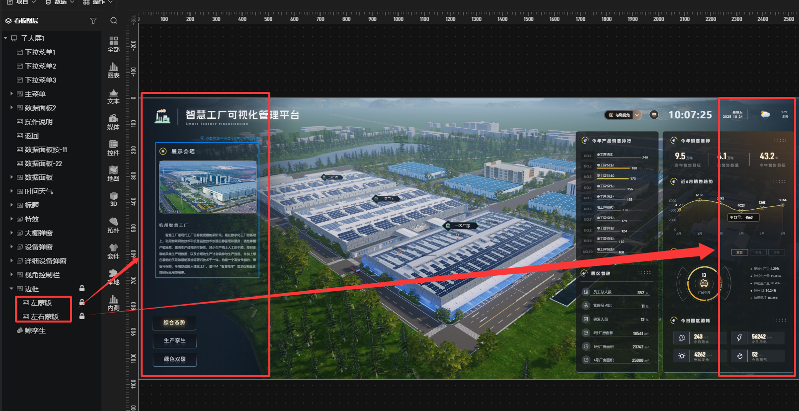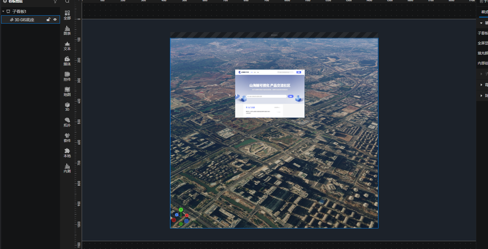 1、可以将鲸孪生组件缩小,放在大屏的中间。