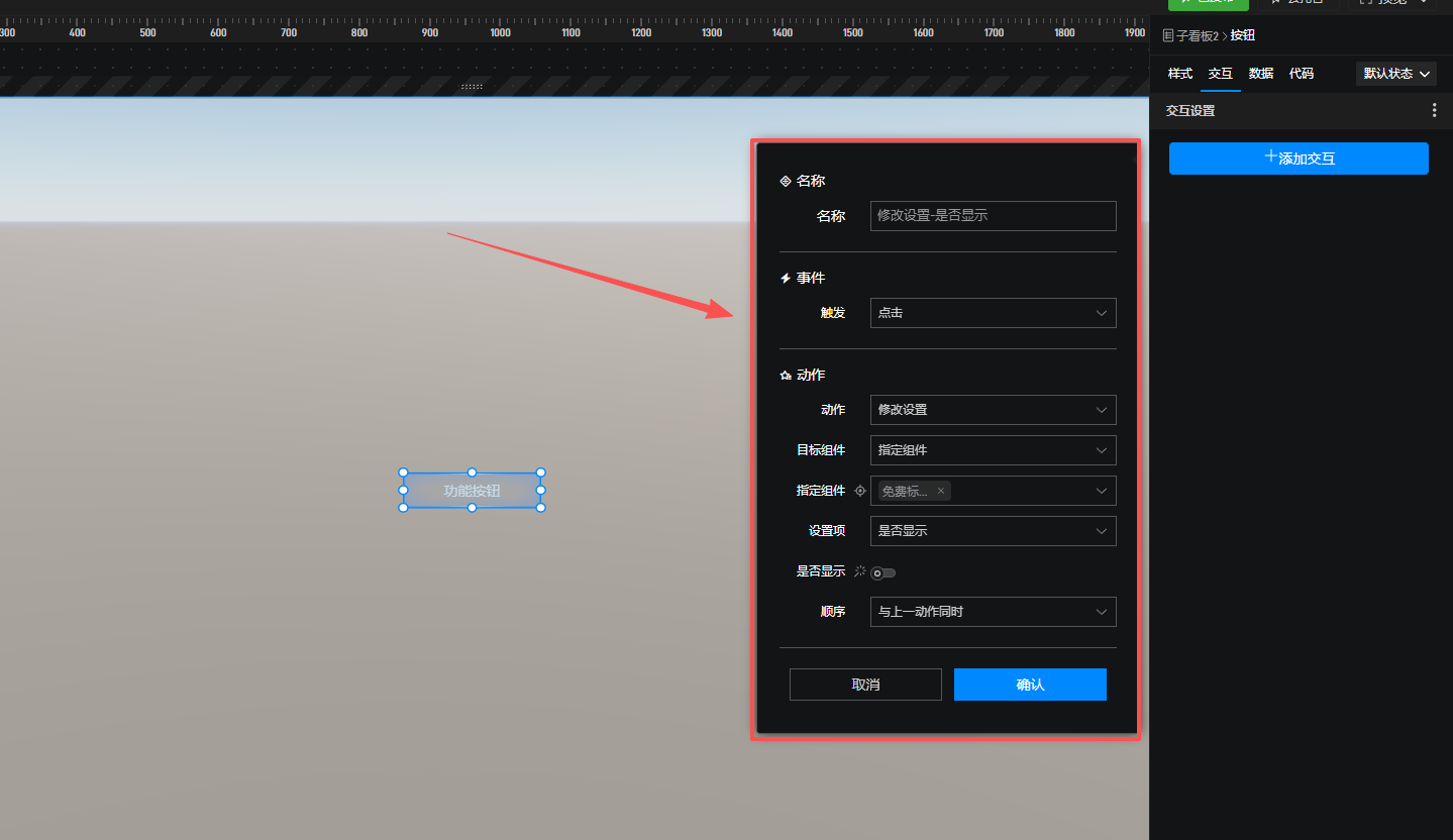 可以在返回按钮上添加一个隐藏标记的交互,这样就能在点击按钮关闭分层动画的同时隐藏标记了