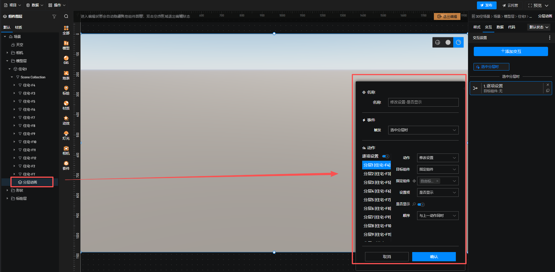 3、想要点击分层时才展示对应楼层标记的话,可以添加交互来控制标记是否显示