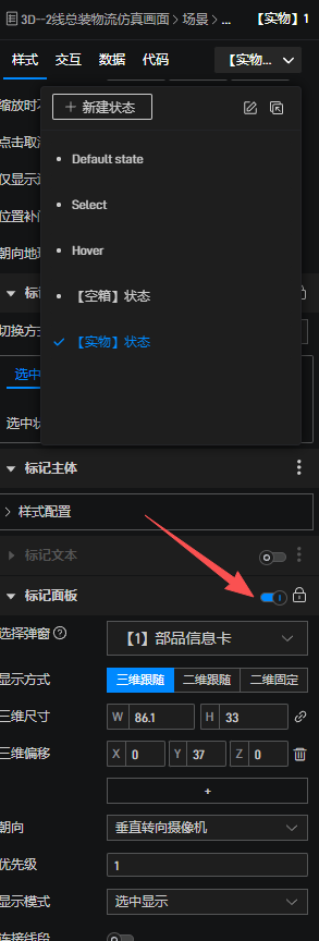 当我给标绘设定了两个状态,状态1和状态2,我想状态1关联标记面板,状态2不关联