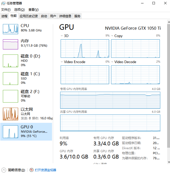 1、如果电脑已经有独立显卡了,那么可以在编辑时打开任务管理器观察一下GPU是否有在运行,没有的话,可以点此参考Win10如何设置独立显卡? - 数字孪生可视化产品交流社区 / Win11如何设置独立显卡? - 数字孪生可视化产品交流社区,设置一下显卡高性能
