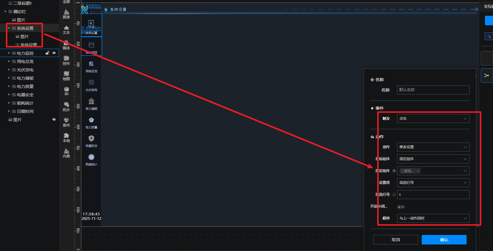 我想实现点击侧边导航上边标题跟着改变给标题设置的 从表格获取,受其他组件联动给侧边栏设置的 交互 跳转 联动其他组件\ 设置了,但是不生效是为什么呢?
