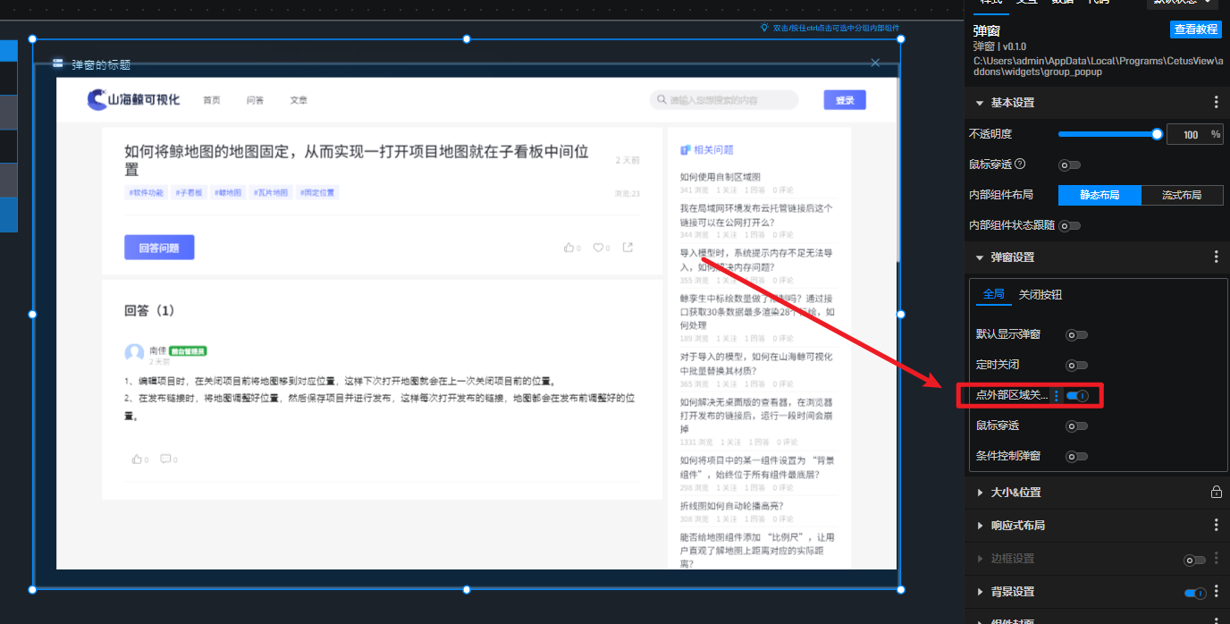 2、将iframe组件放在弹窗中,然后给弹窗开启点击外部区域关闭。